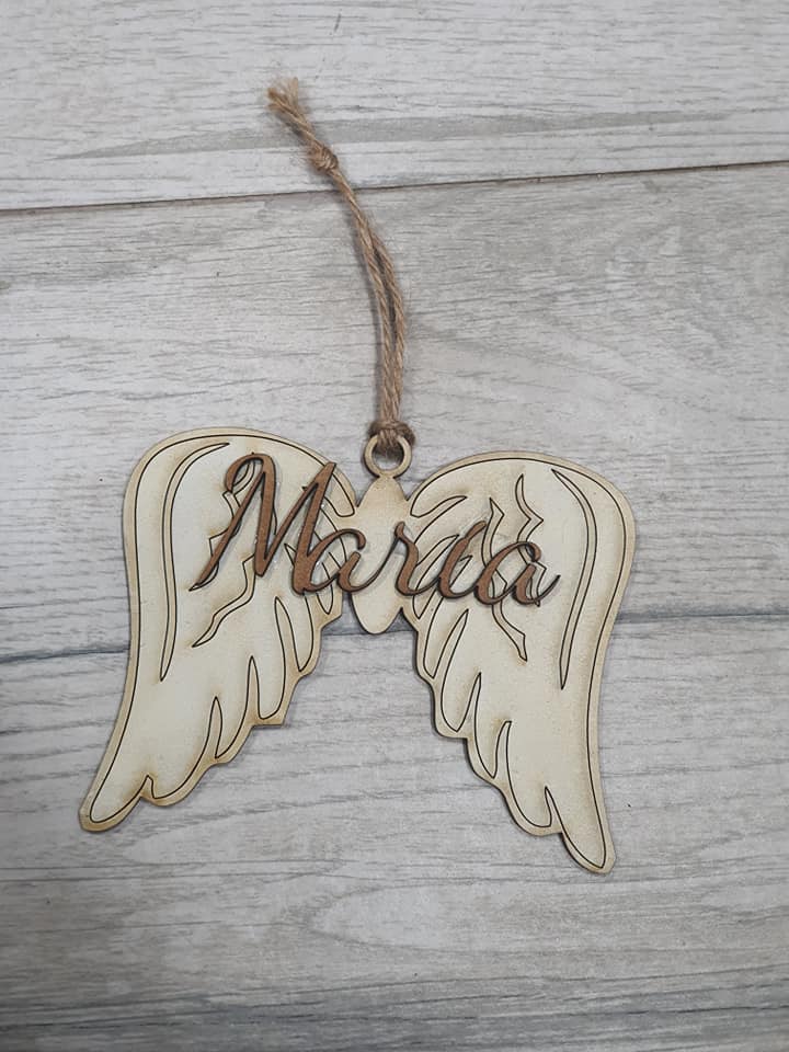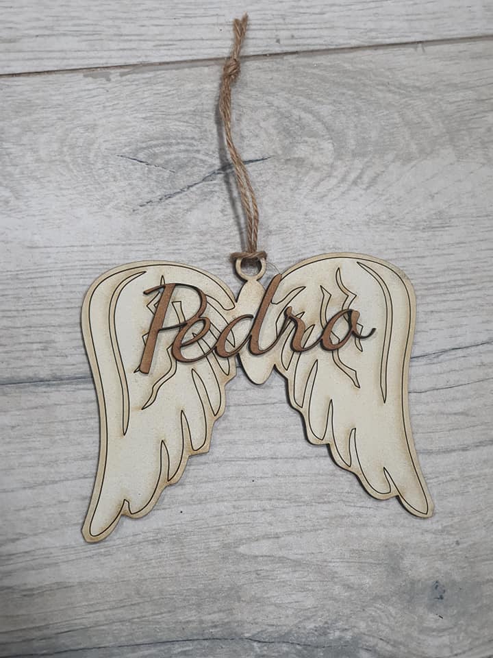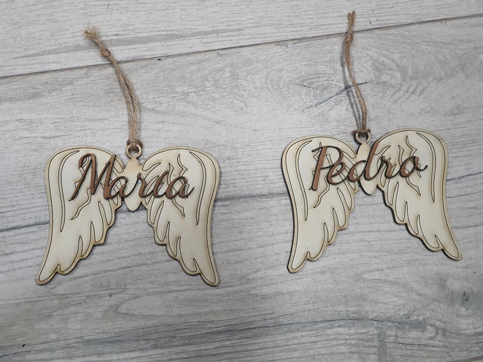 Alas de ángel con el nombre de tu ser querido, para recordarlo siempre en tu arbol de navidad.