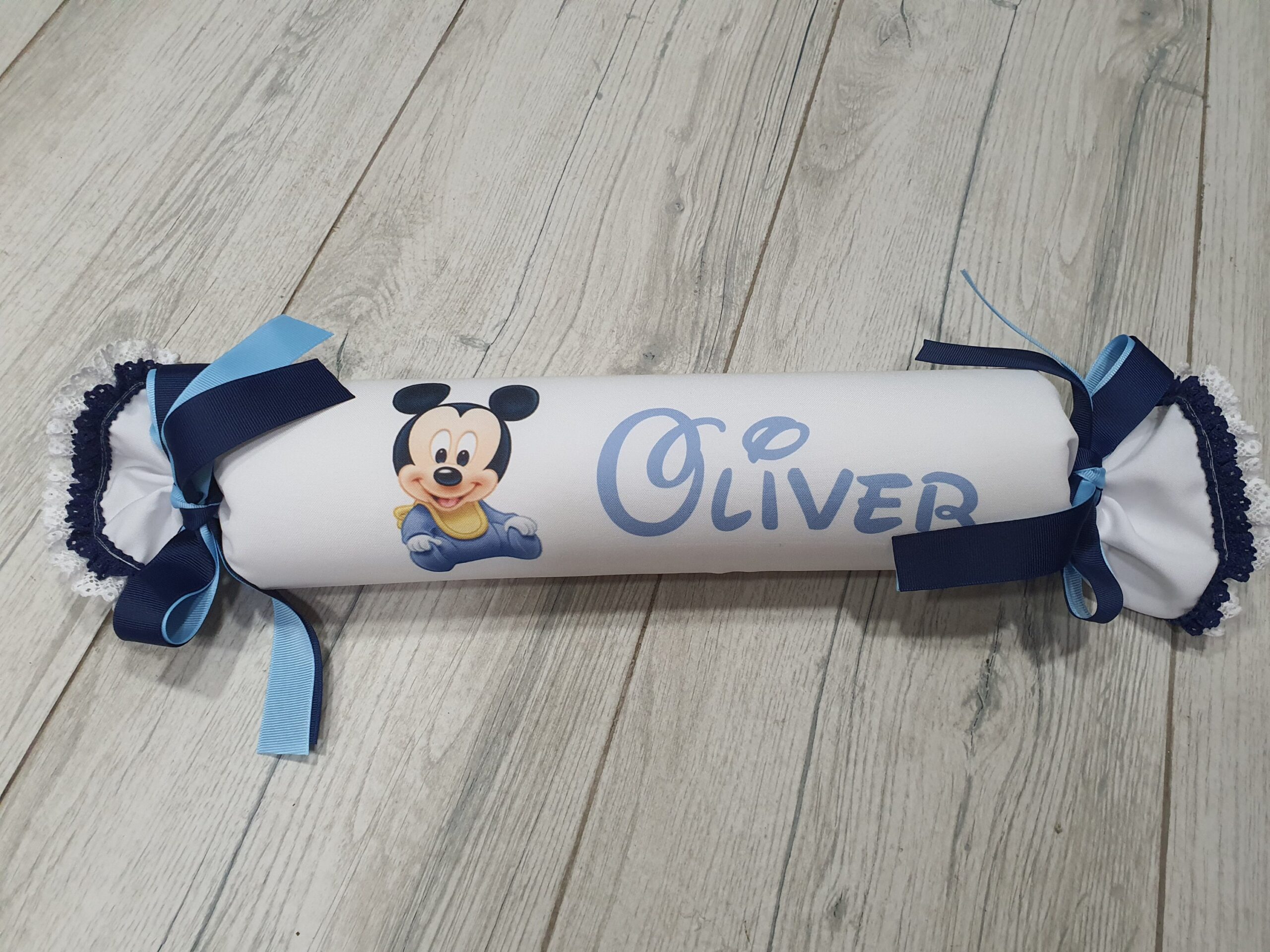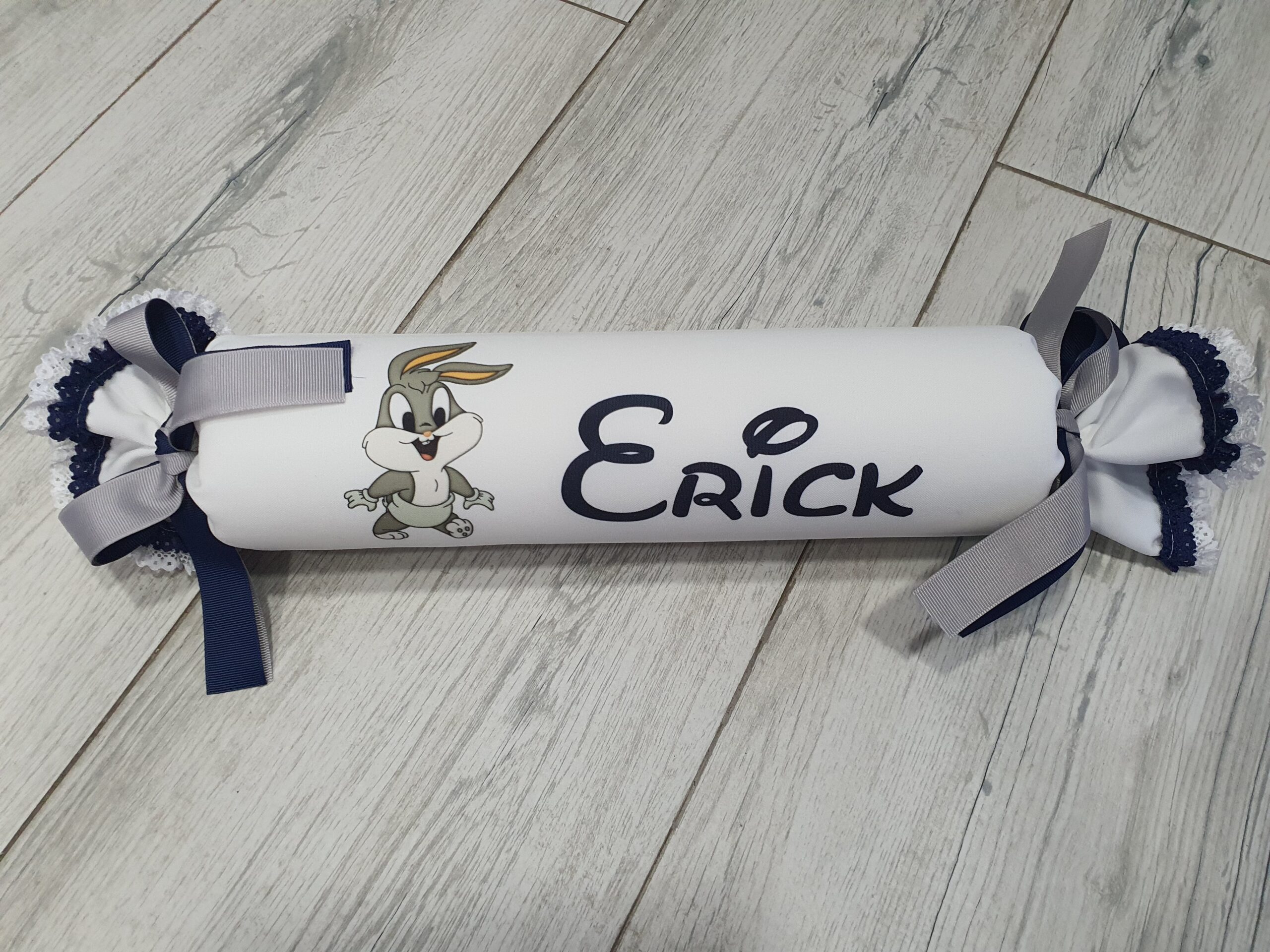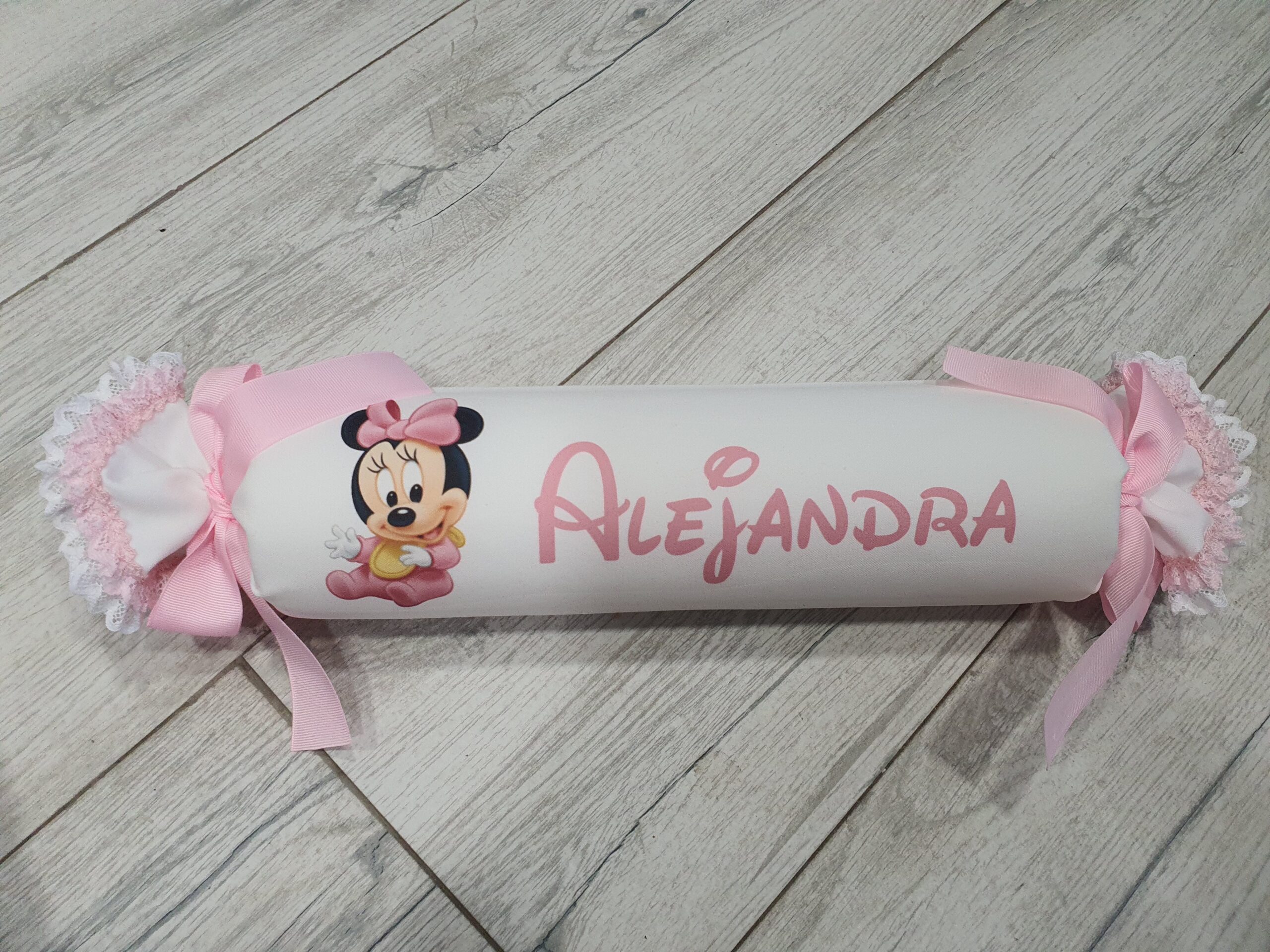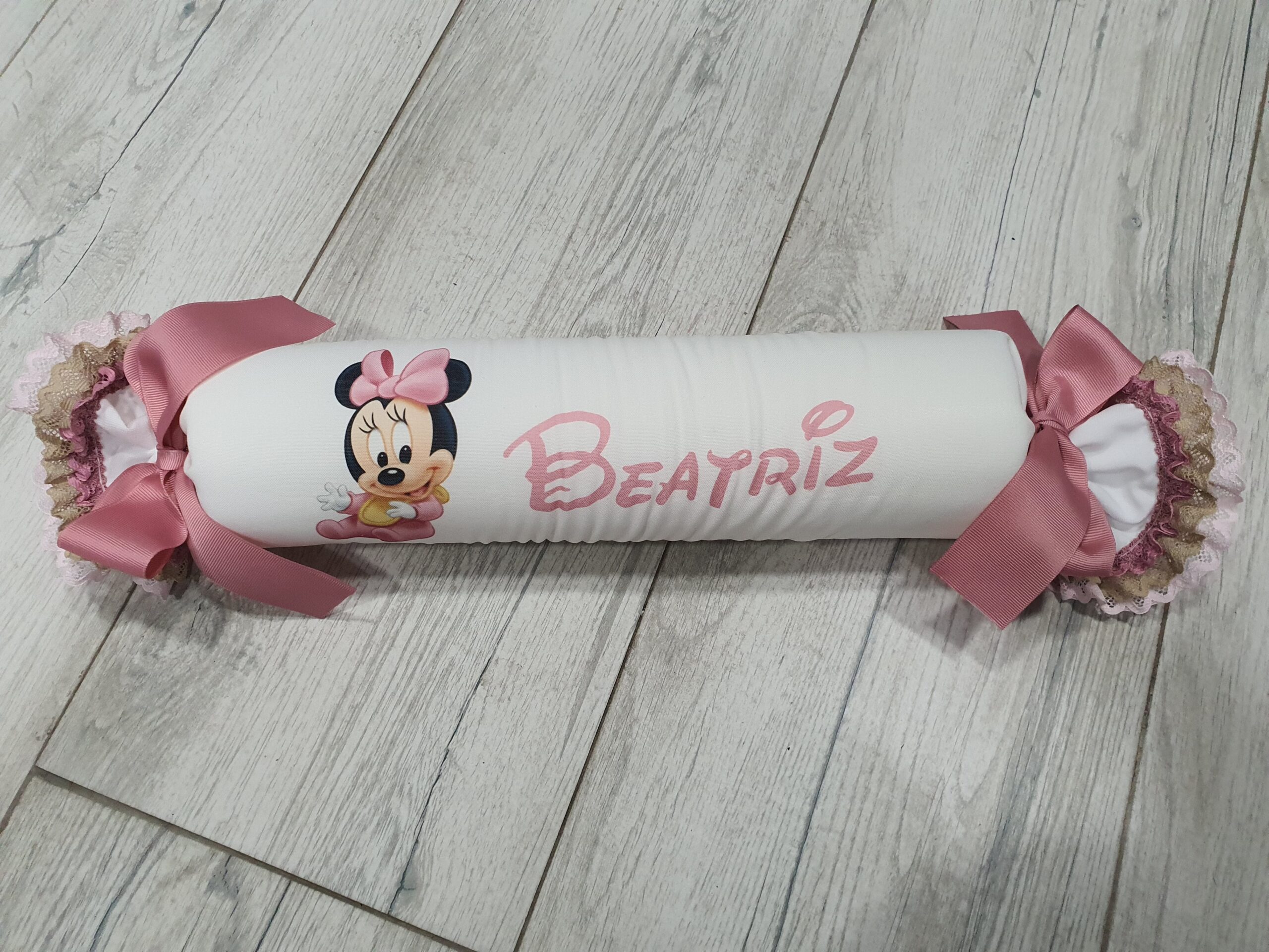Antivuelco bebé del personaje o dibujo que quieras, pon en notas el personaje que quieras, nombre, color del lazo y bordes.
