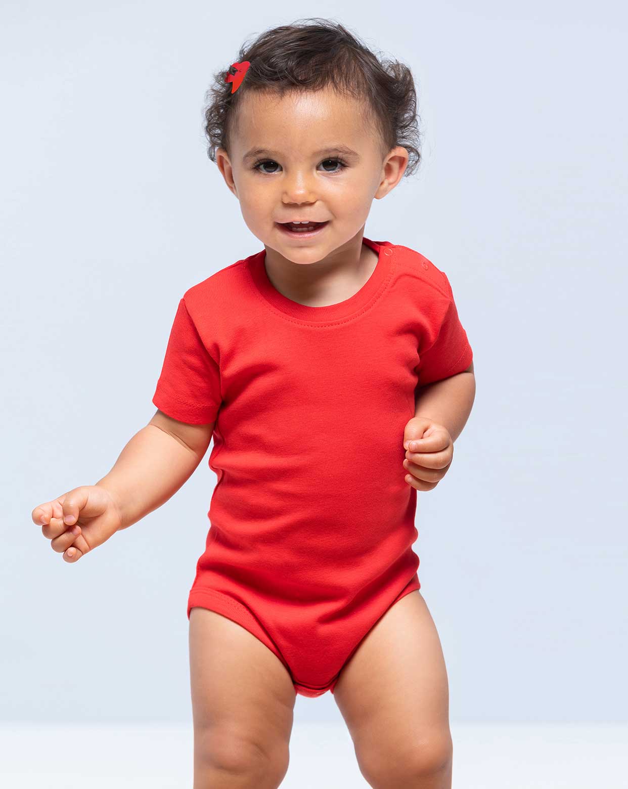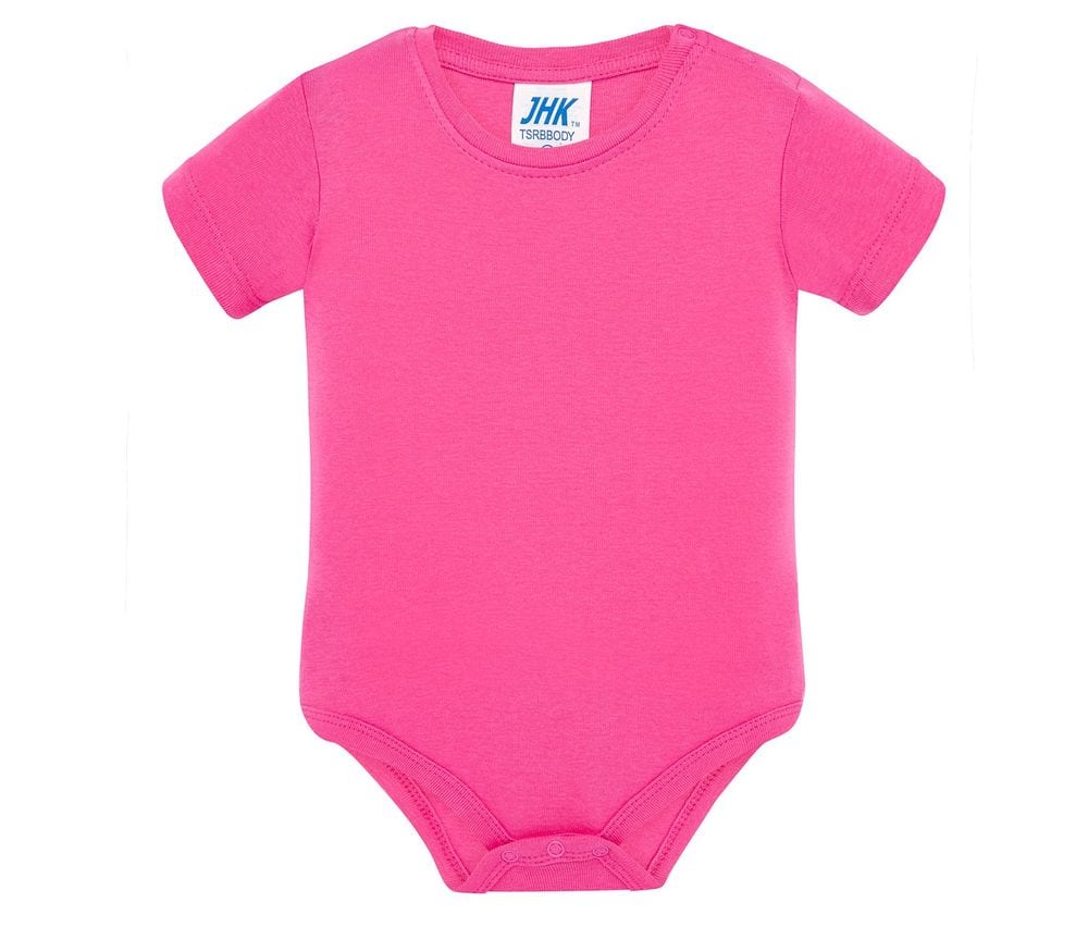 Body para bebé de manga corta, 100% algodón. Ideal para personalizar con serigrafía, vinilo o transfer. Disponible en 10 colores y desde la talla 3 hasta los 18 meses. Etiqueta removible.
