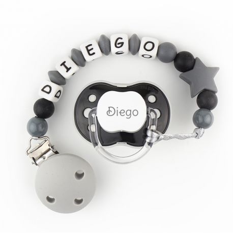 Chupete New Classic Negro + Cadenita de silicona Estrella gris personalizados