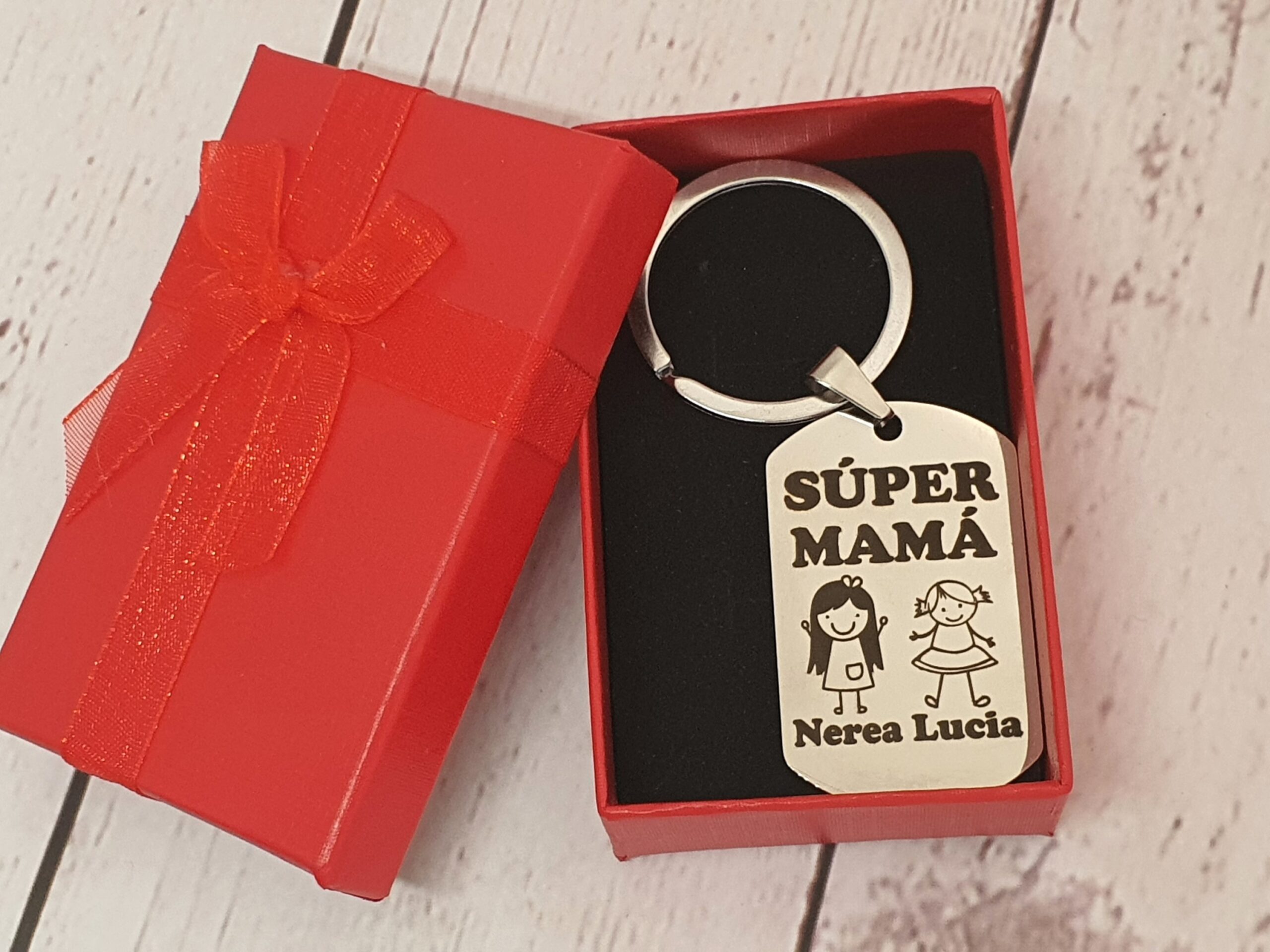 Llavero súper mamá o súper abuela, con caja personalizado.